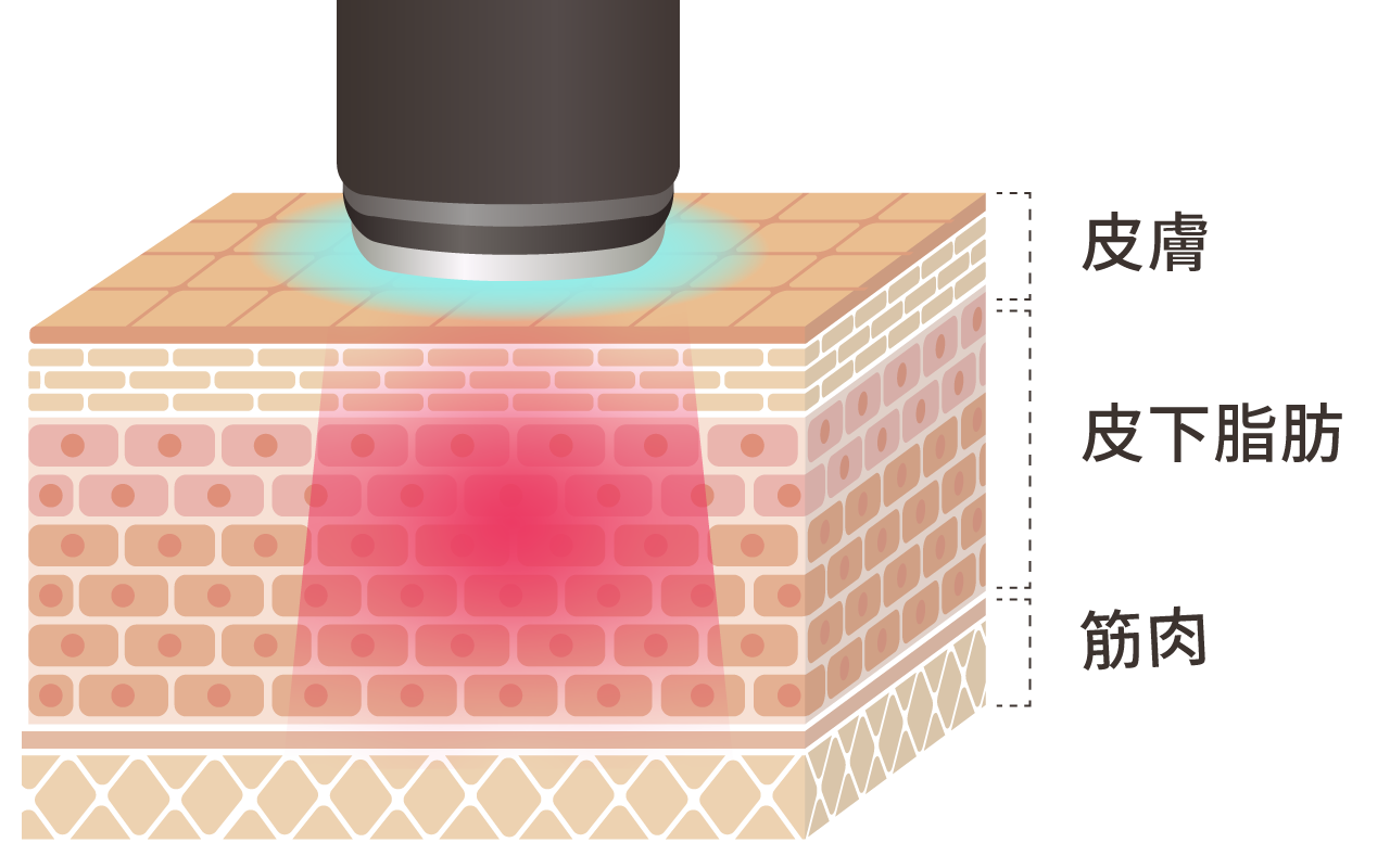 真皮層から皮下脂肪層にかけて効率的に熱を届けることにあります。